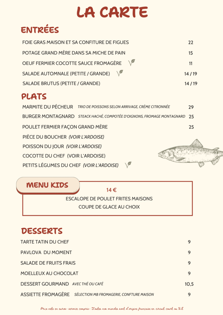 Notre carte est volontairement évolutive : elle n’est pas fixe et peut changer régulièrement en fonction des arrivages, des produits du marché et de la saisonnalité.